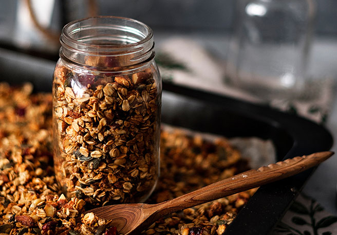 Ezzel a finom diófélékből, kókuszreszelékből és aszalt gyümölcsökből készült, alacsony hisztamintartalmú müzlivel remekül indul a nap!